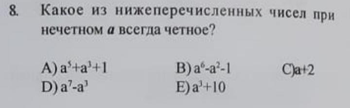 D) a^7-a^3 - четное число, т.к. нечетное число - нечетное число= всегда четное: 5-3=2