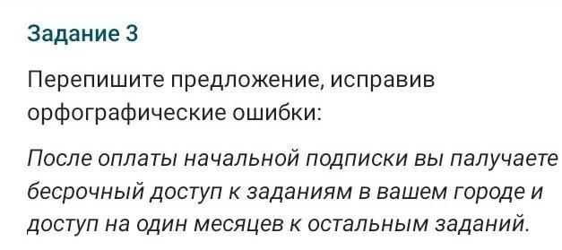 Ответ:после оплаты начальной подписки подписки вы получите бессрочный доступ к заданиям в вашем городе и доступ на один месяц к остальным заданзаданиям