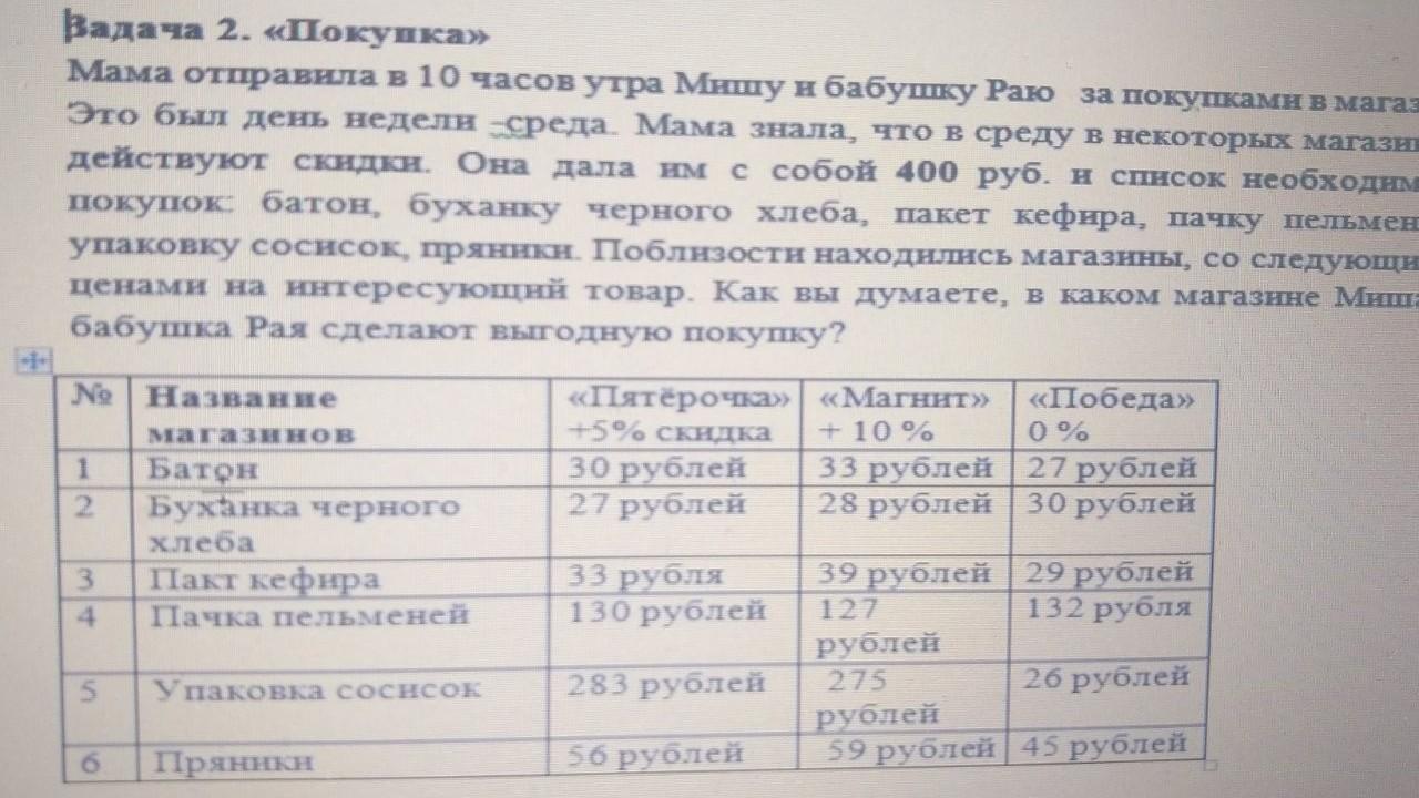 т.к. у них есть всего 400 рублей, а вся покупка в "Победе" будет стоить 289 рублей