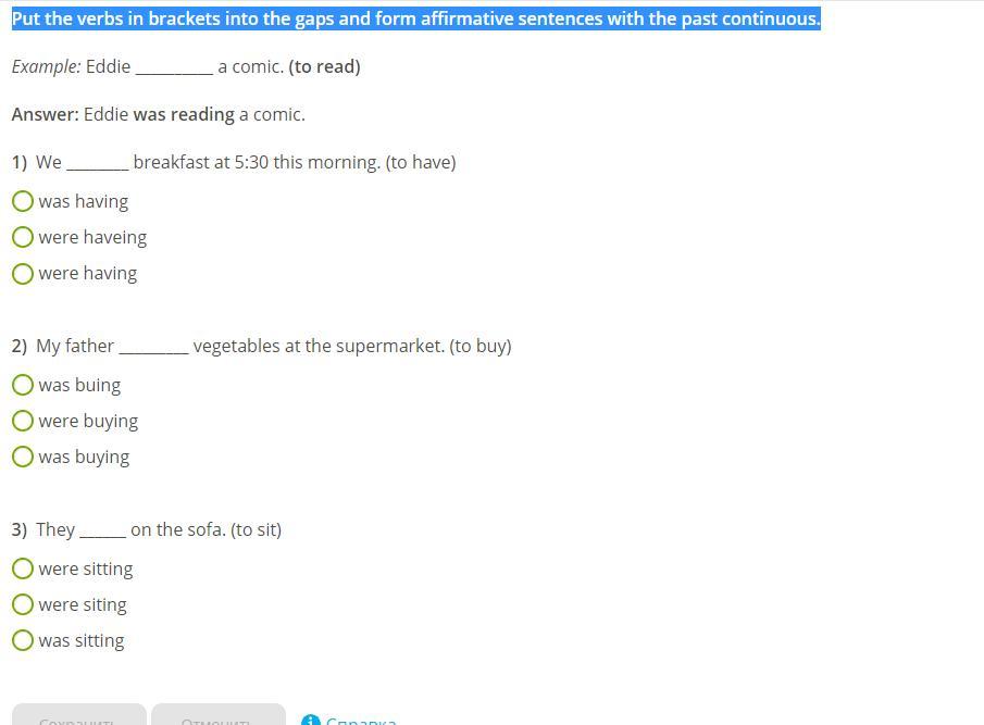 Put the verbs in brackets into the gaps and form affirmative sentences with the past continuous.