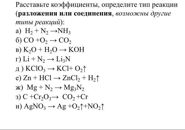 и) 2AgNO3 = 2Ag + O2+ 2NO2 (реакция разложения)
