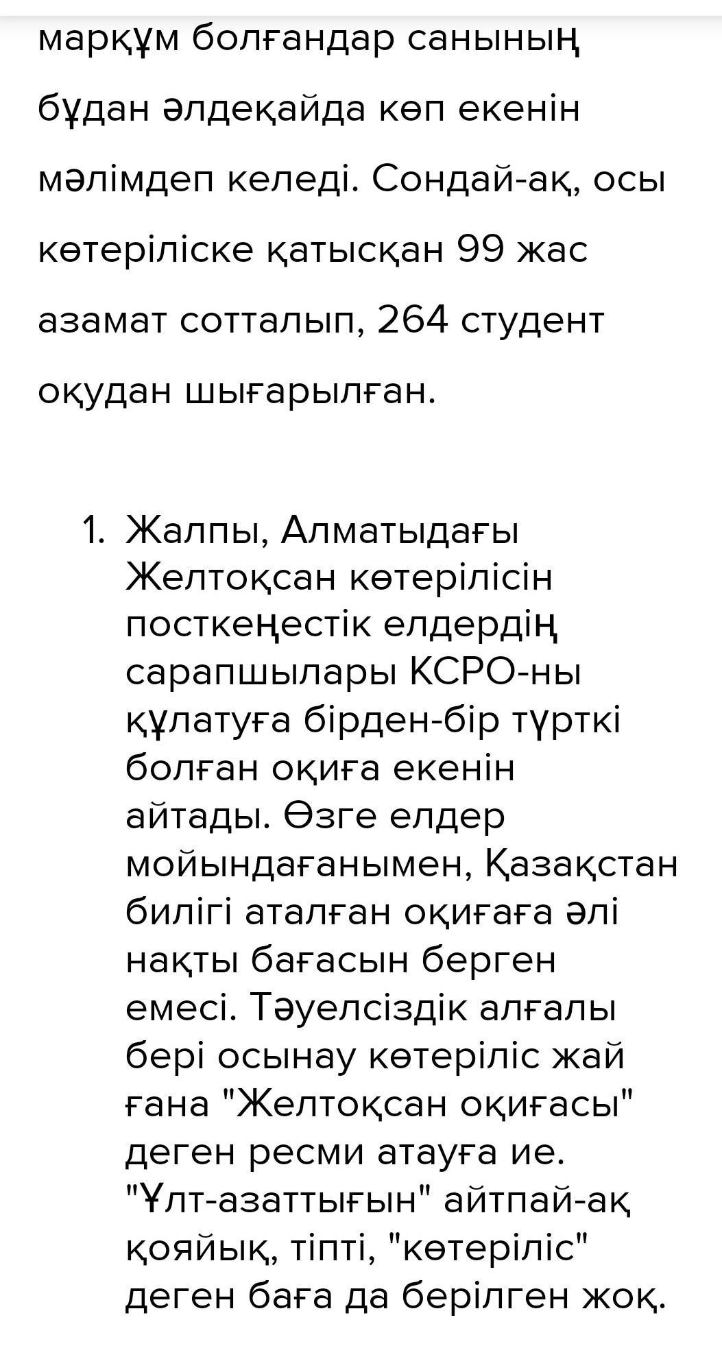ЖАЗЫЛЫМ 2 -тапсырма. Суреттерге қара. Ғаламтор материалын пайдаланып, Желтоқсан оқиғасы туралы қысқаша мәтін құра.