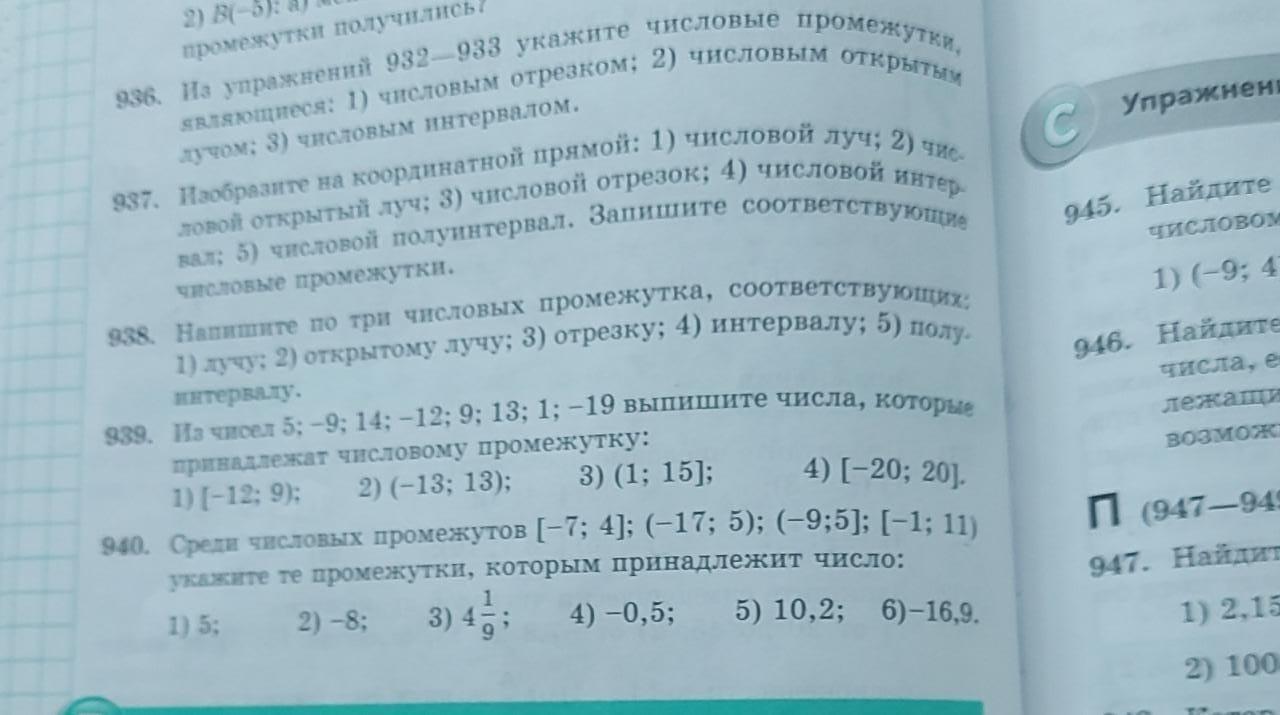 Номер 936 упражнение 932 933 укажите числовые промежутки являющиеся числовым отрезком числовым открытом лучом СРОЧНО!!!