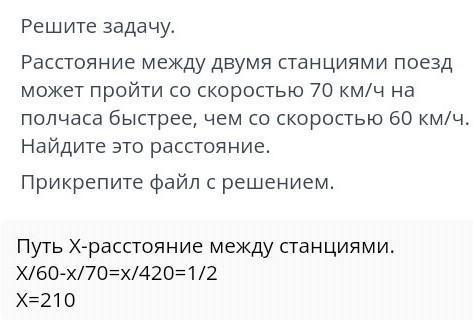 За полчаса поезд со скоростью 70км/ч может проехать на 35 км больше чем со скоростью 60 км/ч за тоже время