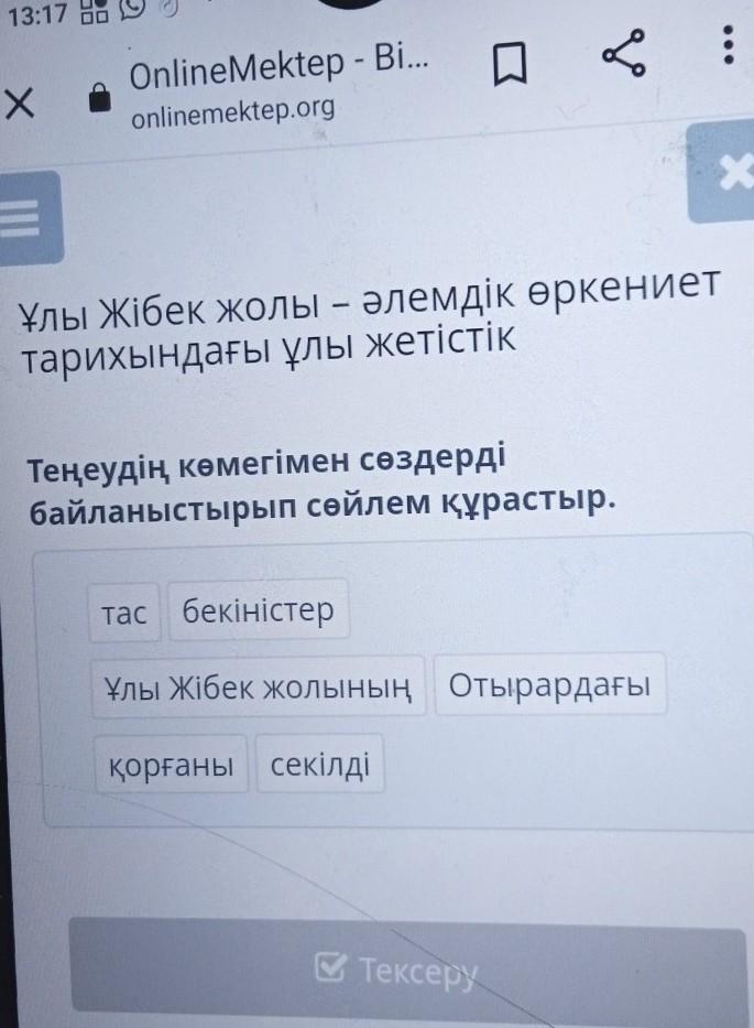 Теңеудің көмегімен сөздерді байланыстырып сөйлем құрастыр.