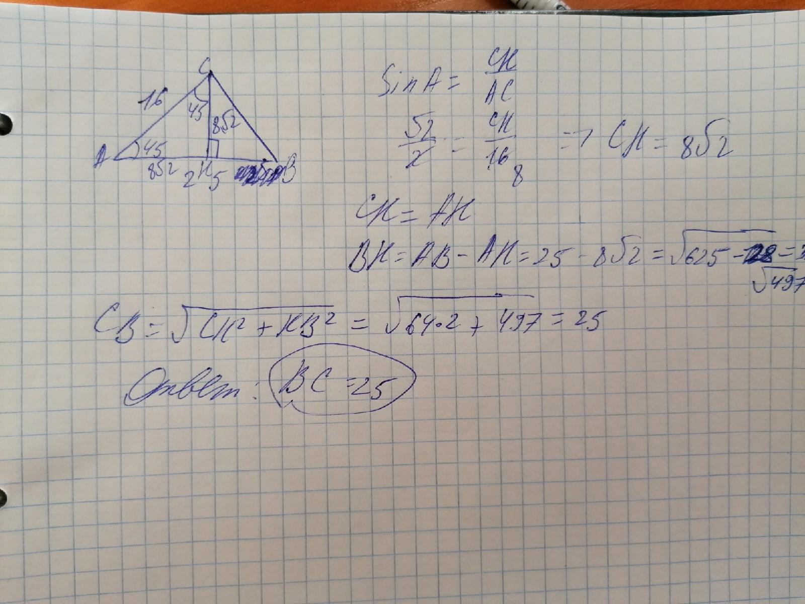 По прямоугольному треугольнику с помощью синуса находим высоту .