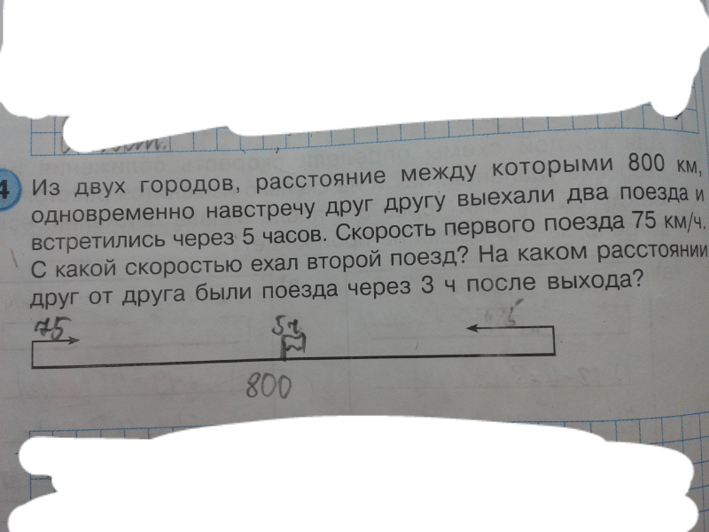 75 * 3 = 225 км проехал первый поезд за 3 часа
