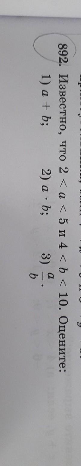 2<a<5 и 4<b<10 ; 1) a+b ; 2+4<a+b<5+10 =6<a+b<15; 2)а*b; 2*4<a*b<5*10=8<a*b<50; 3) a/b ; 2:10<a/b<5:4=0,2<a/b<1,25.