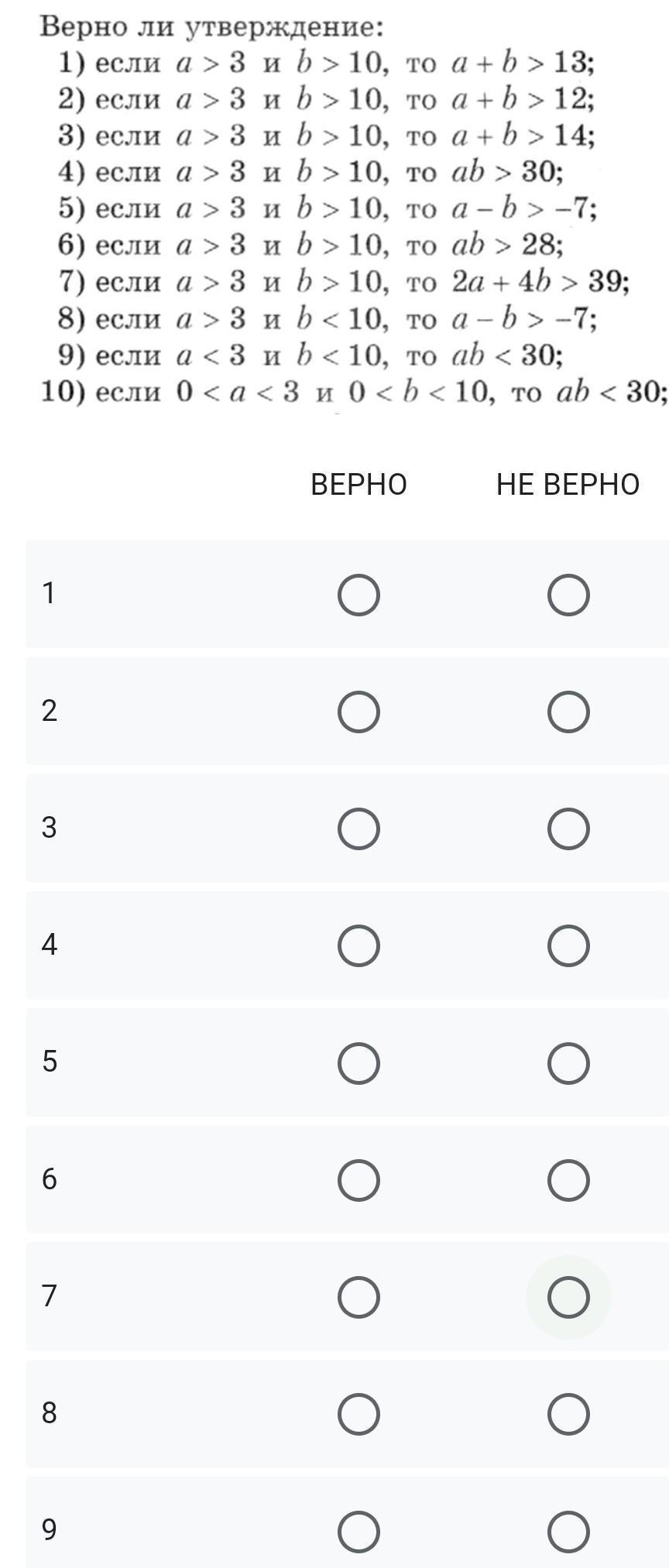 8. Да, верно при любых значениях, т.к. неравенство строгое