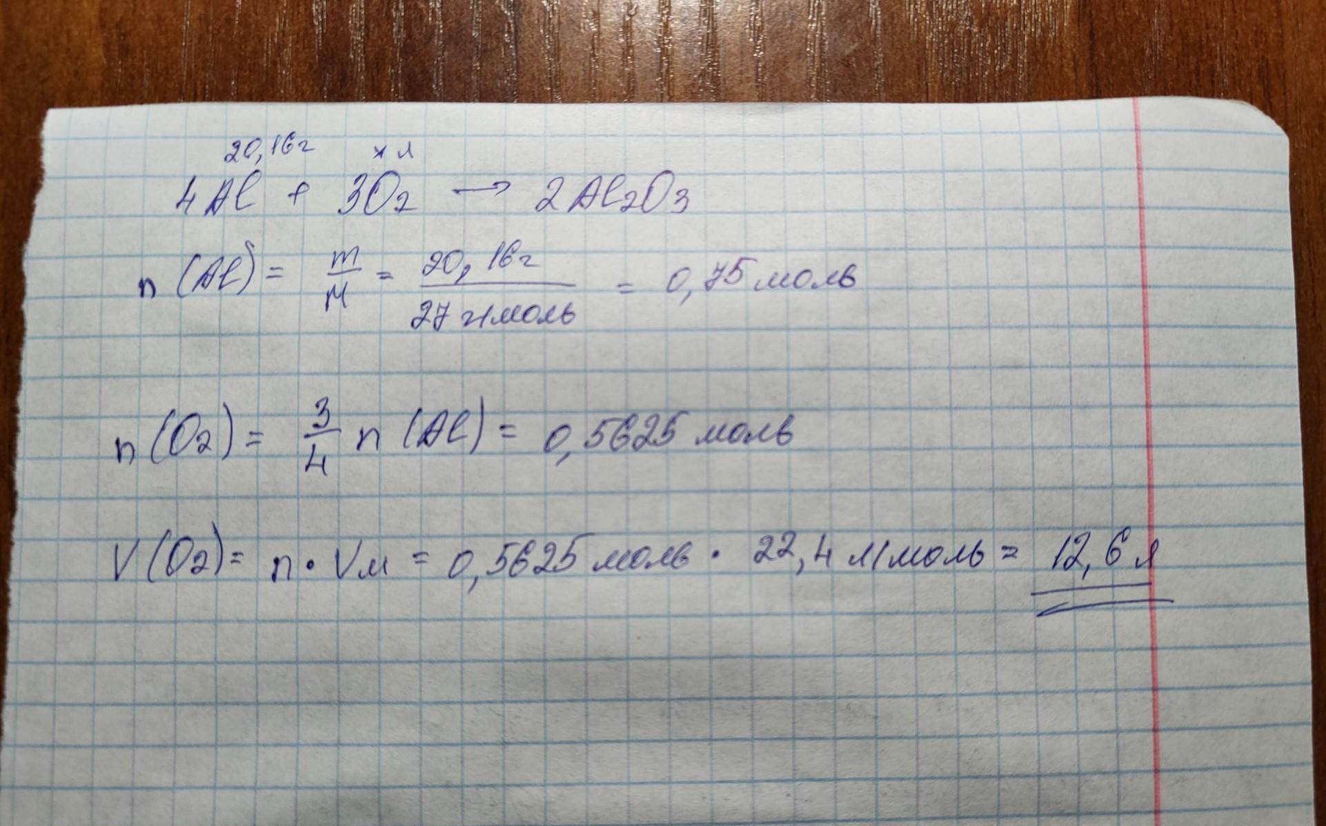 При сгорании 20,16г алюминия полутом оксид алюминия рассчитать объём кислорода вступившего в реакцию при нормальных условиях