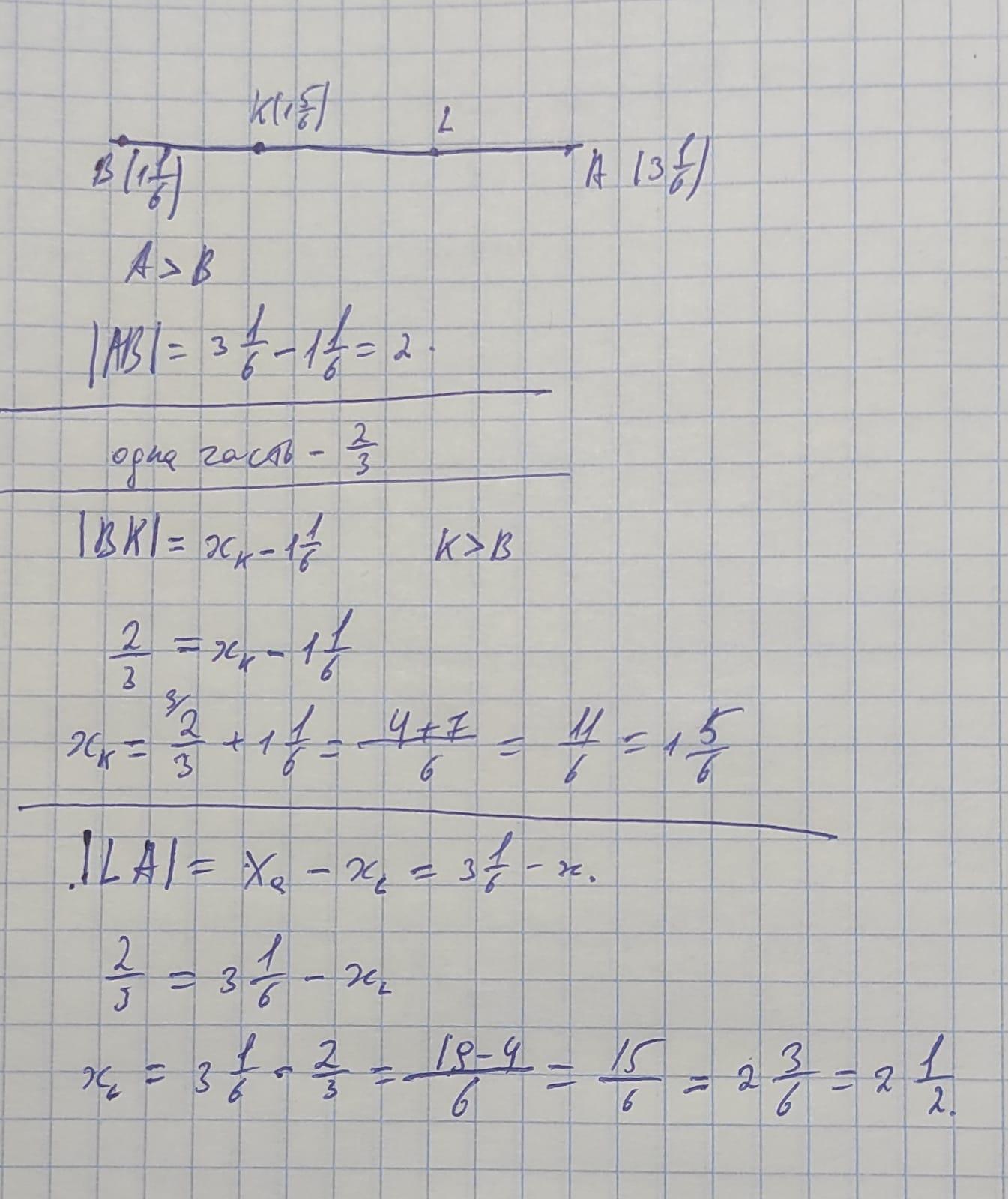 1 1/6+ 2/3= 7/6+4/6= 11/6 -координаты первой точки( точки а)