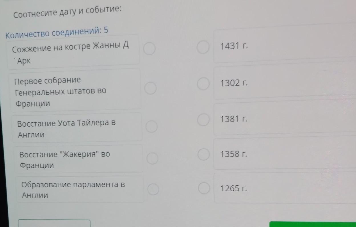 Сожжение на костре Жанны Д “Арк 1431 r. Первое собрание Генеральных штатов во Франции 1302 r. Восстание Уота Тайлера в Англии 1381 r. Восстание "Жакерия" во Франции 1358 r. Образование парламента в Англии 1265 r.