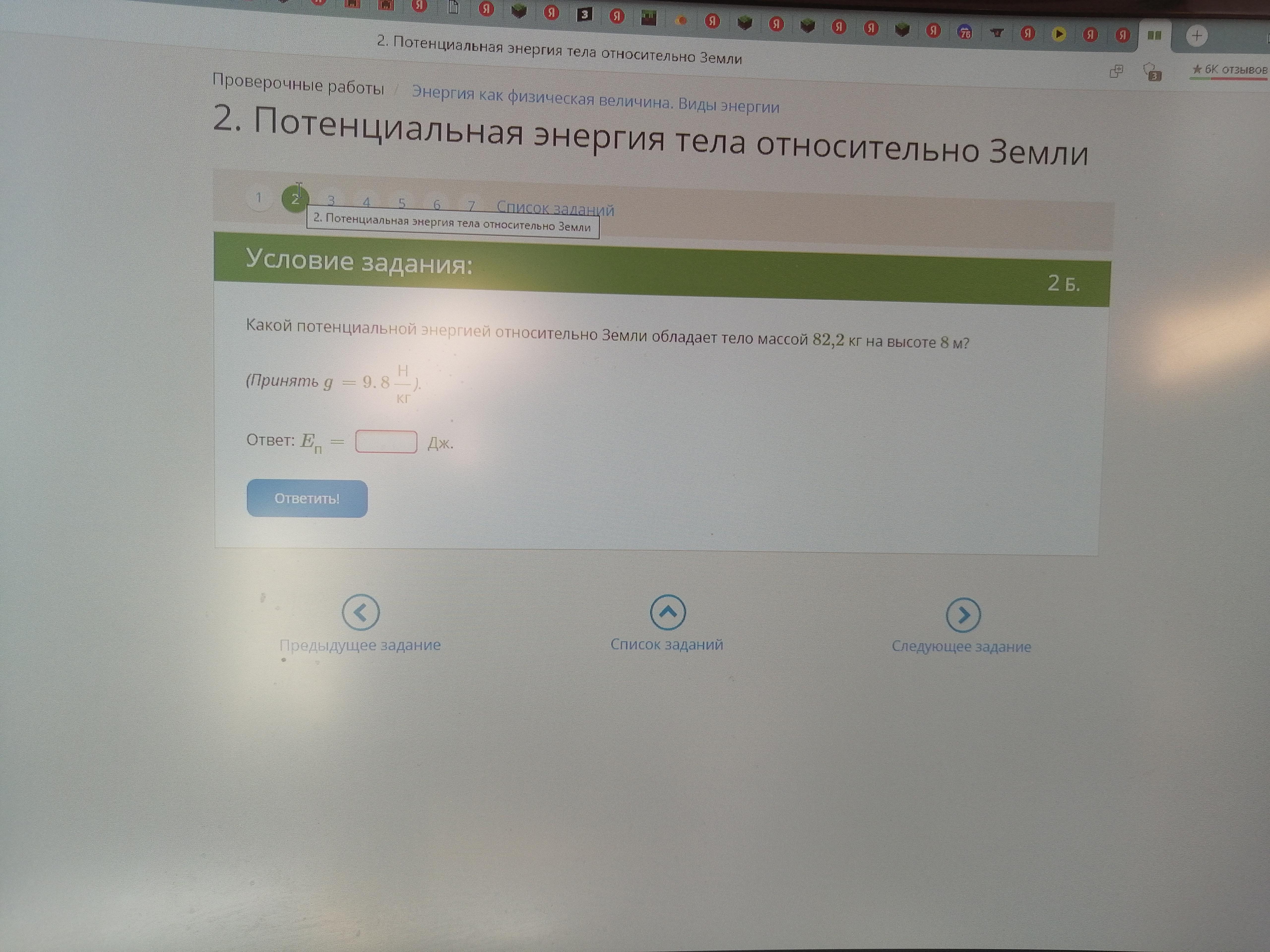 Eп=82,2*9,8*8=6444,48