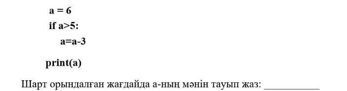 Если а, больше 5, то тогда мы вычтем 3 из а. Получаем результат вычисления и сохраняем в переменной а. Выводим переменную а.