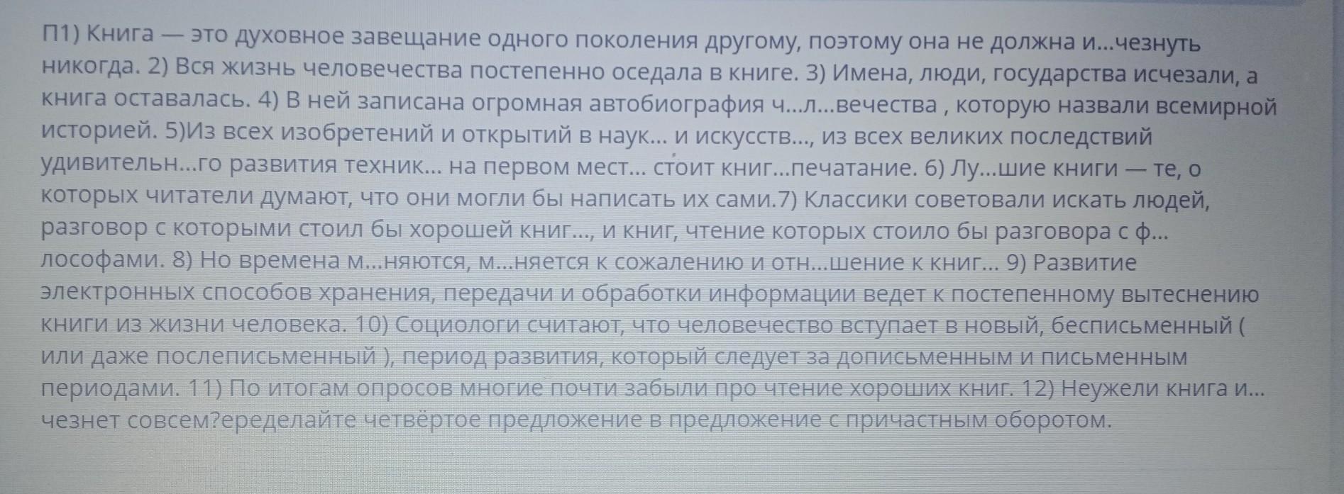 В 3 задании нужно 4 предложение преобразовать в предложение с причастным оборотом.