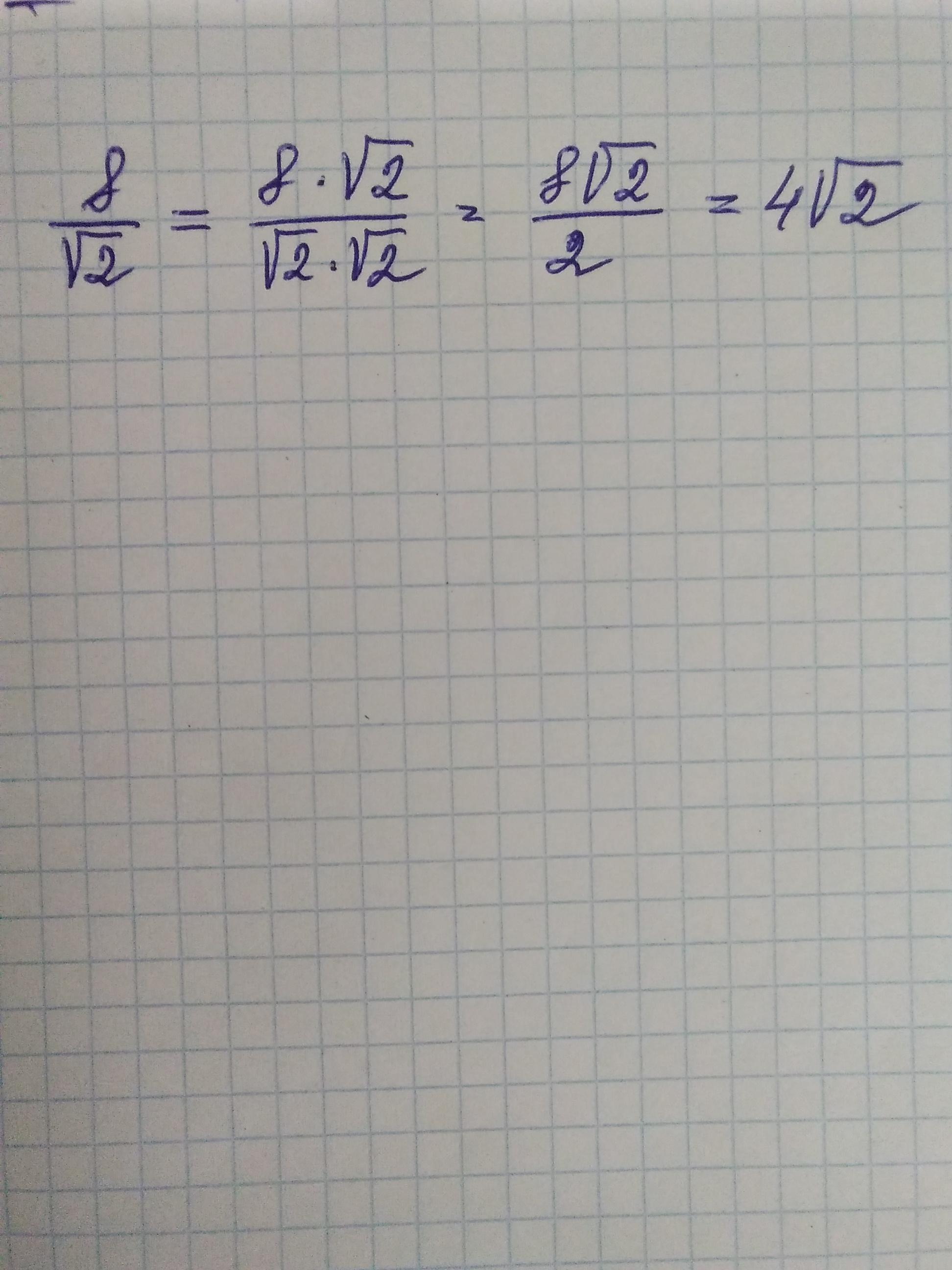 8/√2=8/√2 * √2/√2=8√2/(√2*√2)=8√2/2=4√2