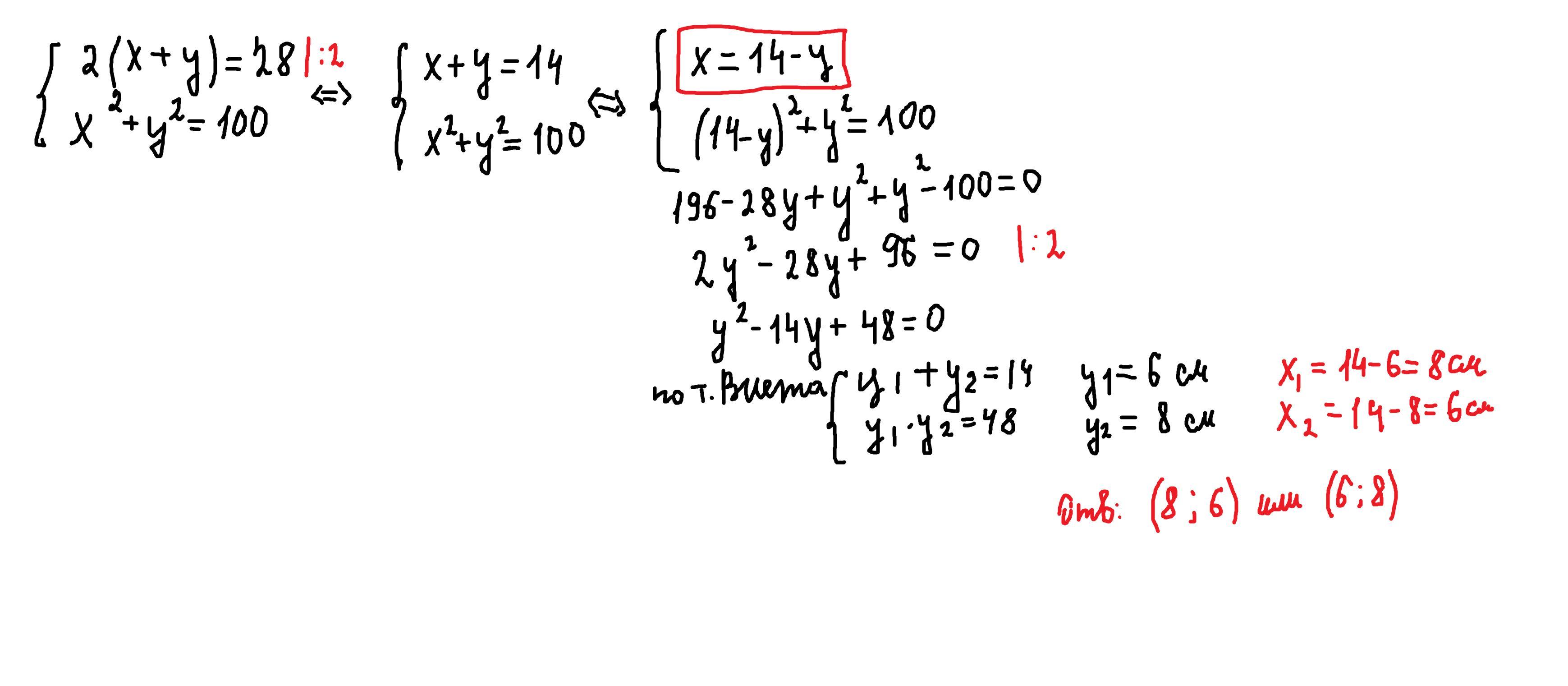 по т.Пифагора d²=x²+y² и тогда х²+у²=10²