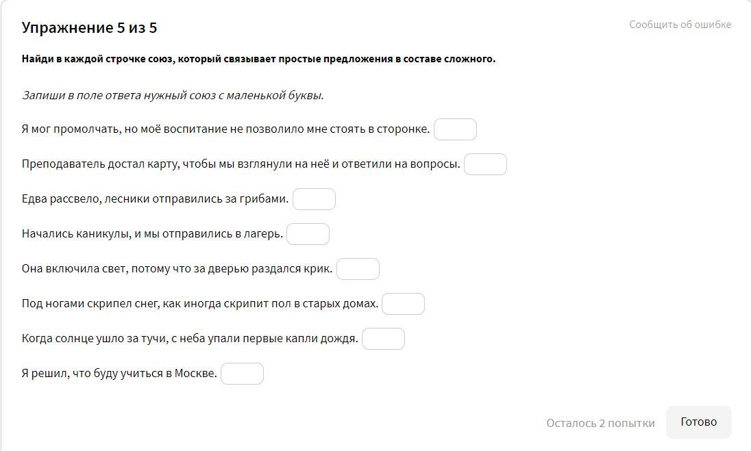 Найди в каждой строчке союз, который связывает простые предложения в составе сложного.