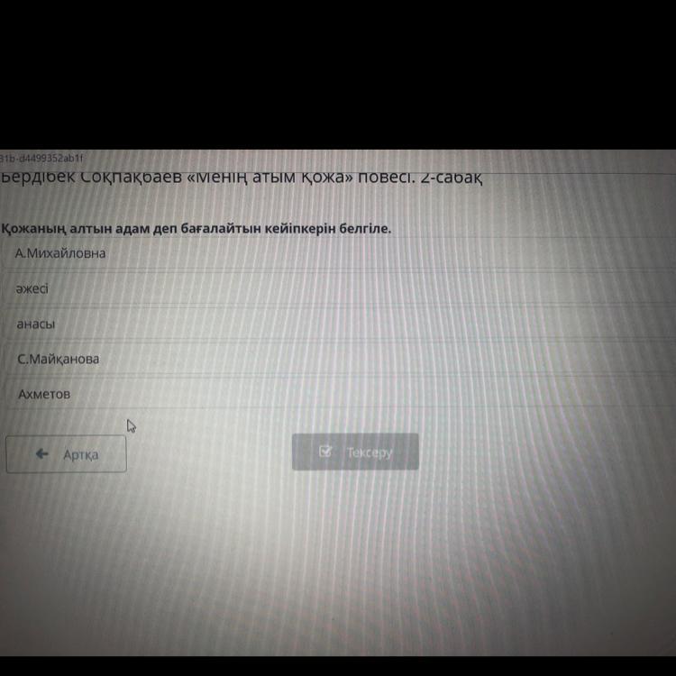 Қожаның алтын адам деп бағалайтын кейіпкерін белгіле.