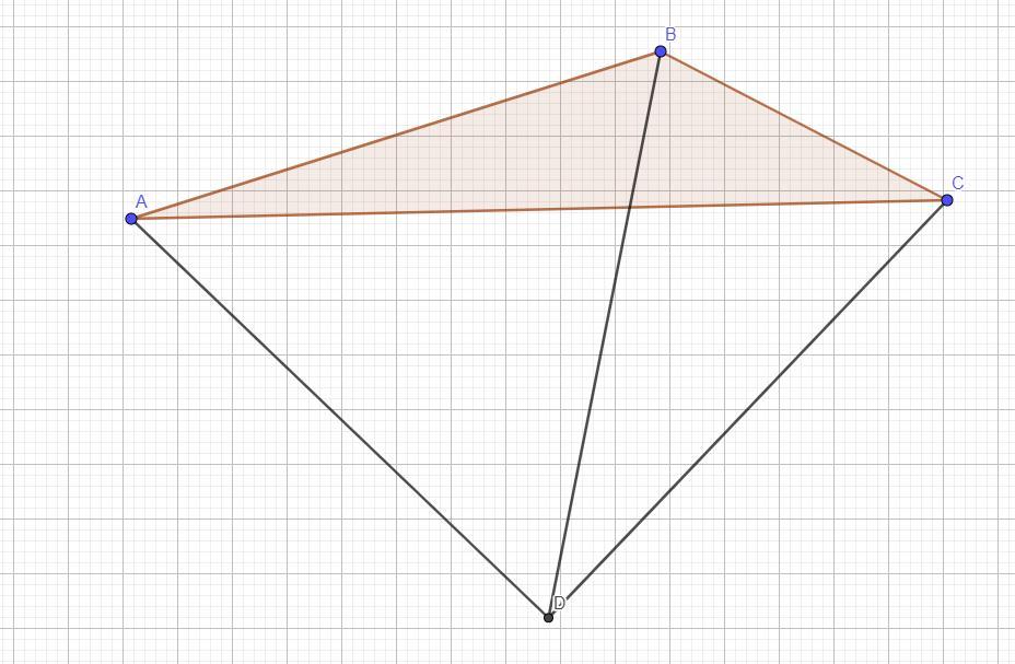 P.s. Небольшое пояснения почему угол BAC меньше, чем BAD и почему угол BCA меньше, чем угол BCD. Это так, потому что наша точка D по условию лежит вне треугольника, а значит отрезки AD и CD проходят за границами.