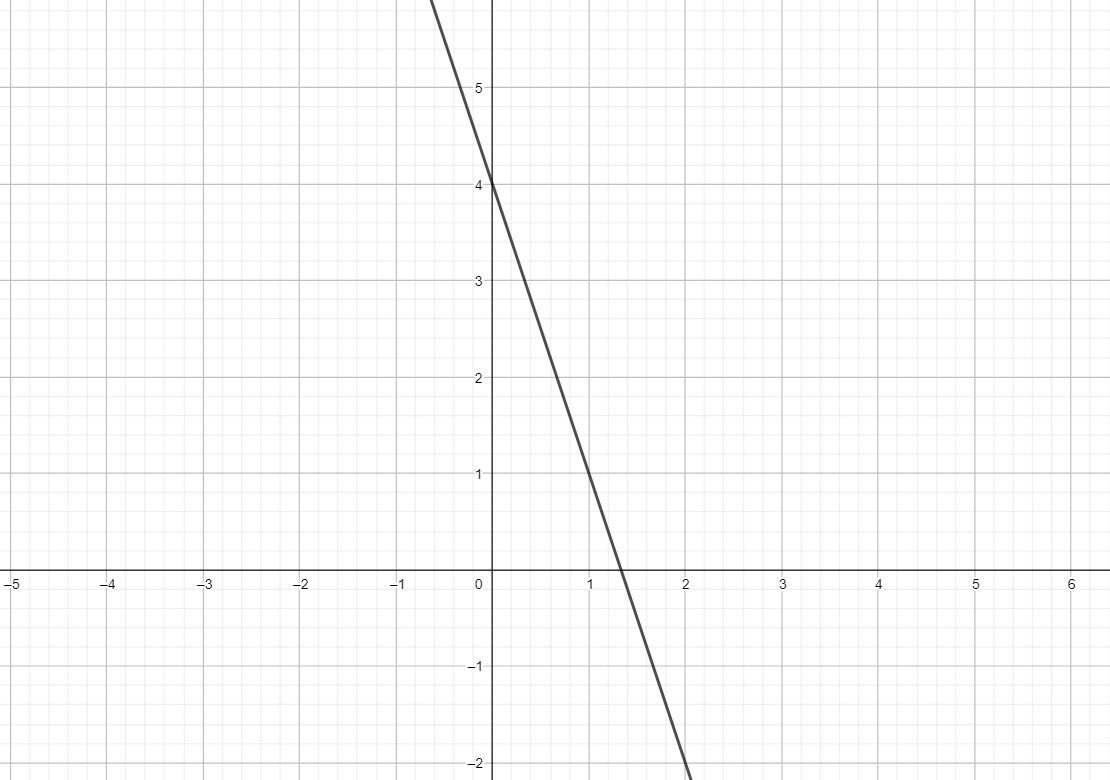 Побудуйте графік функції у = -3х + 4. Користуючись графіком, знайдіть: а) значення функції при х = 1; б) значення аргументу, при якому у = -2.