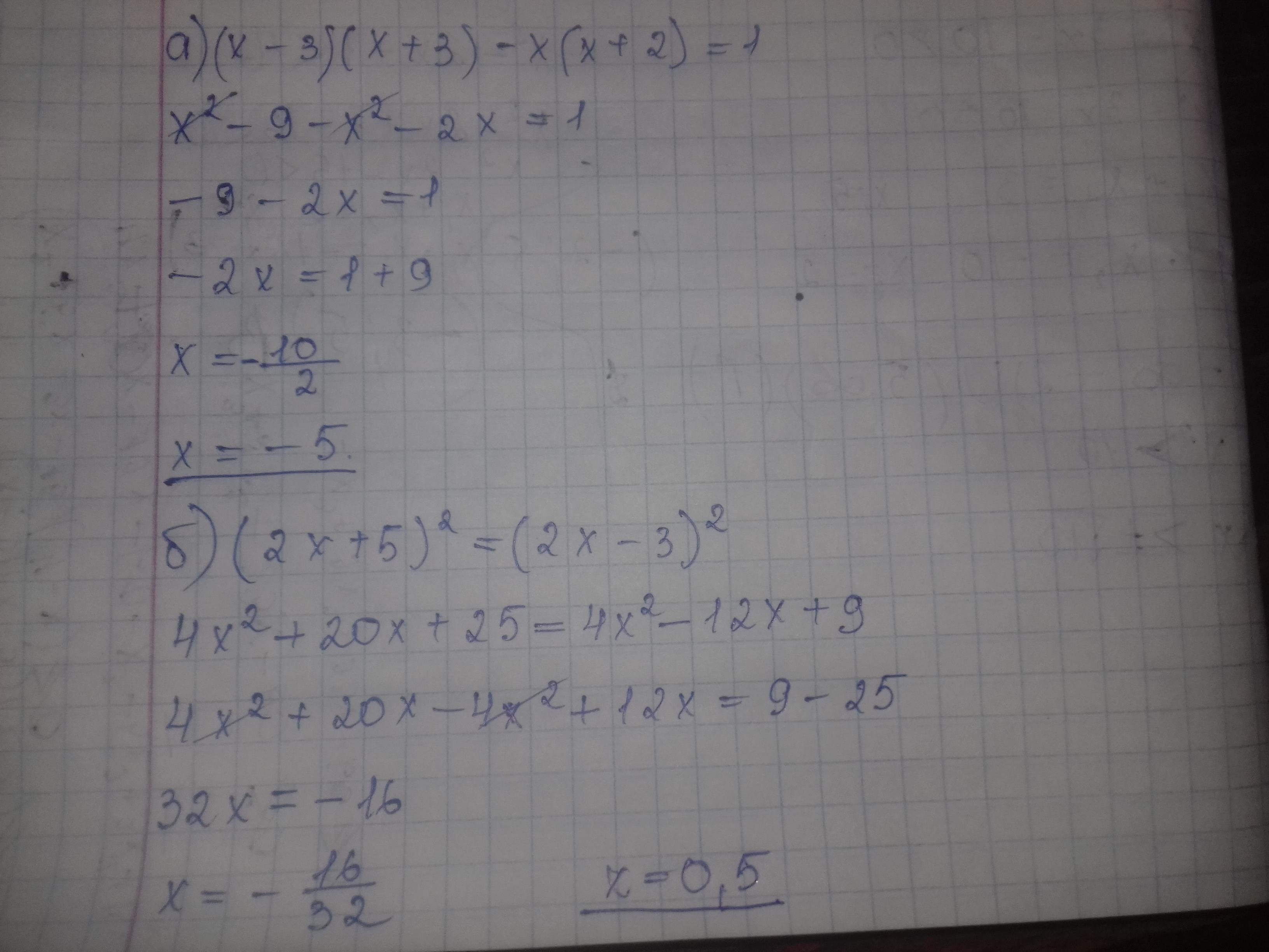 б) (2х + 5)2 = (2х – 3)2