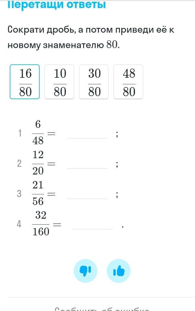 1. 10/80 2.48/80 3.30/80 4.16/80