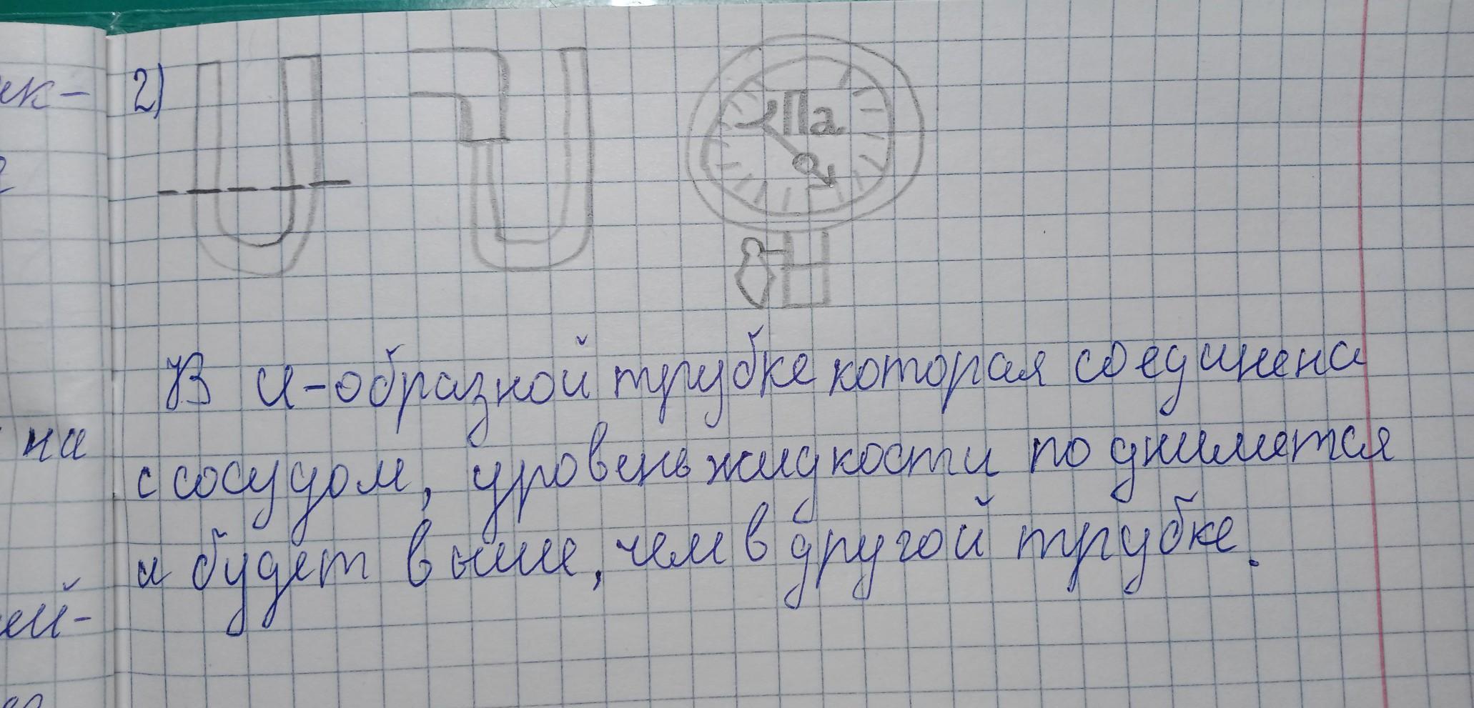 Перенесите схему (рис. 4.42, а) в тетрадь и дополните ее. Как изменится уро- вень жидкости в манометре, если соединить его с сосудом, в котором давление воздуха ниже атмосферного?