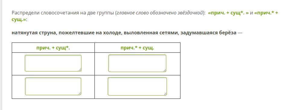 Прич.+сущ.*: натянутая струна, задумавшаяся берёза.