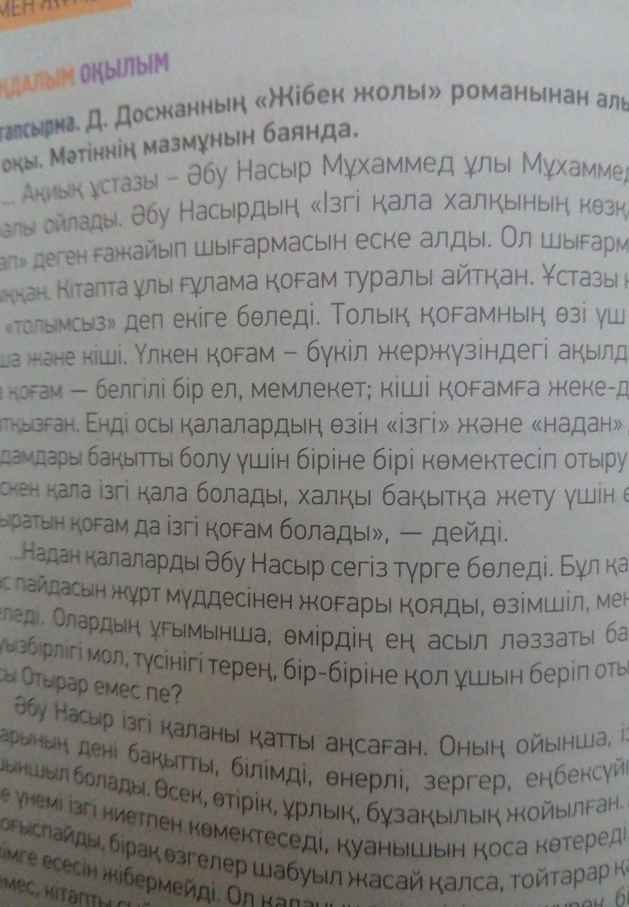 ЖАЗЫЛЫМ АЙТЫЛЫМ 9-тапсырма. Мәтін бойынша жоспар құр. Мәтіндегі негізгі ойды түйіндеп, үш сөйлем жаз. Жоспарыңа сүйеніп, ойыңды айт. Помогите пжжж
