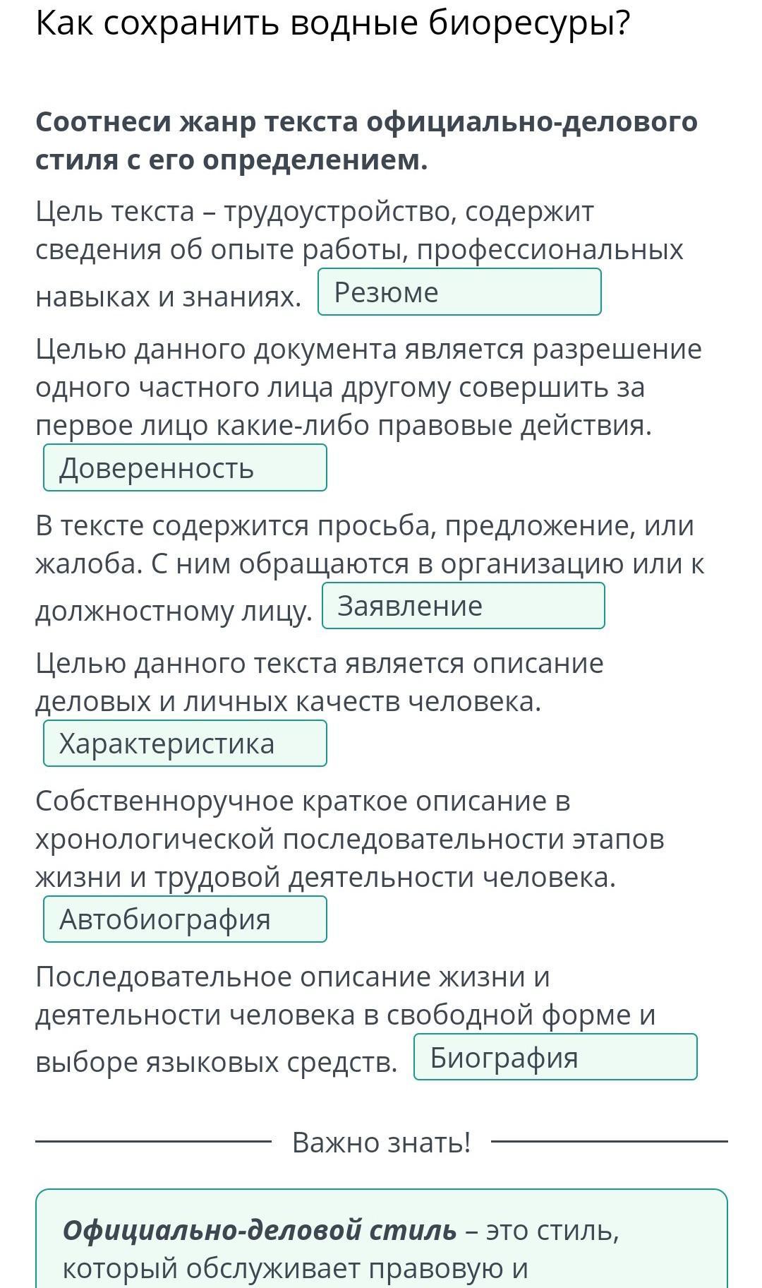 Пжпжпжп Соотнеси жанр текста официально-делового стиля с его определением.