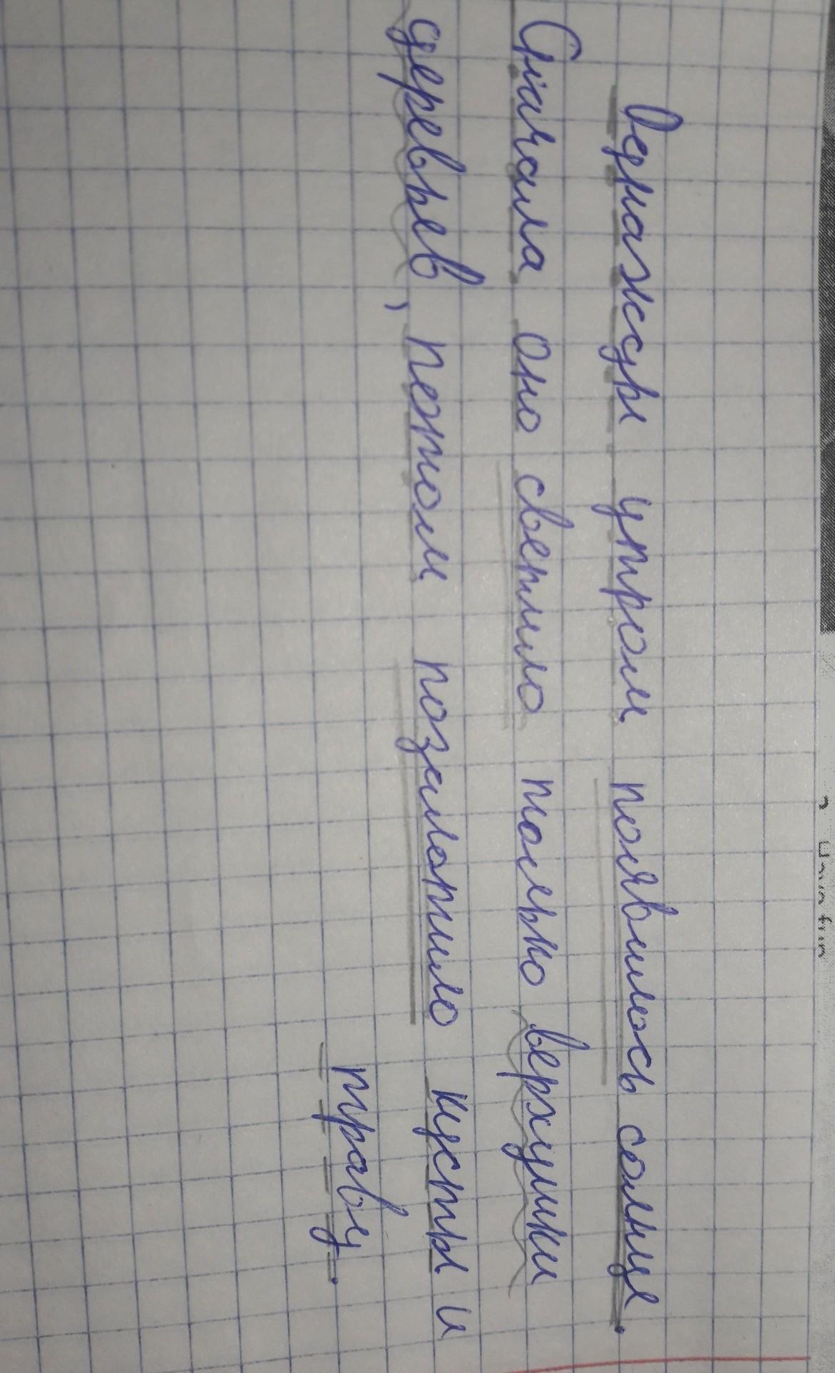 Запиши предложение. Найди наречия, задай к ним вопросы и подчеркни как члены предложения. Однажды утром появилось солнце. Сначала оно осветило только верхушки деревьев, потом позалотило кусты и траву
