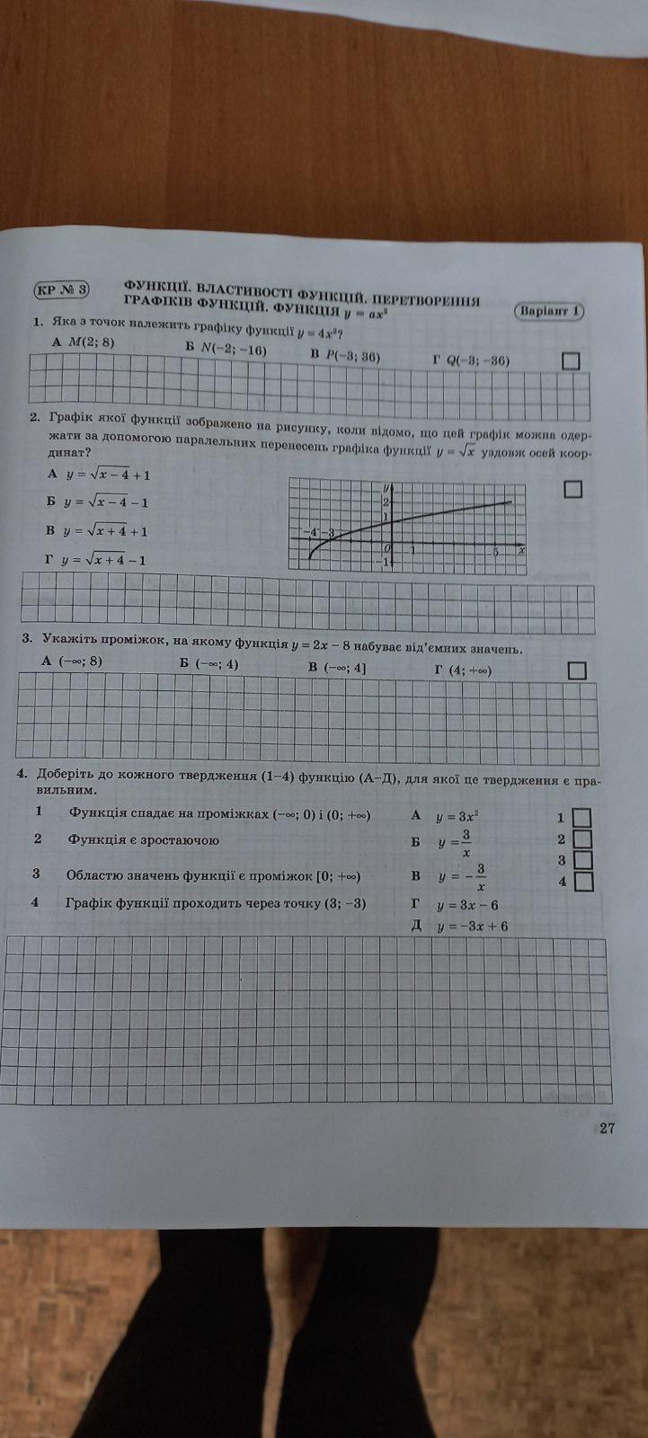 Доберіть до кожного твердження (1-4) функцію (А-Д), для яко це твердження е вильним. Срочнооооооооо