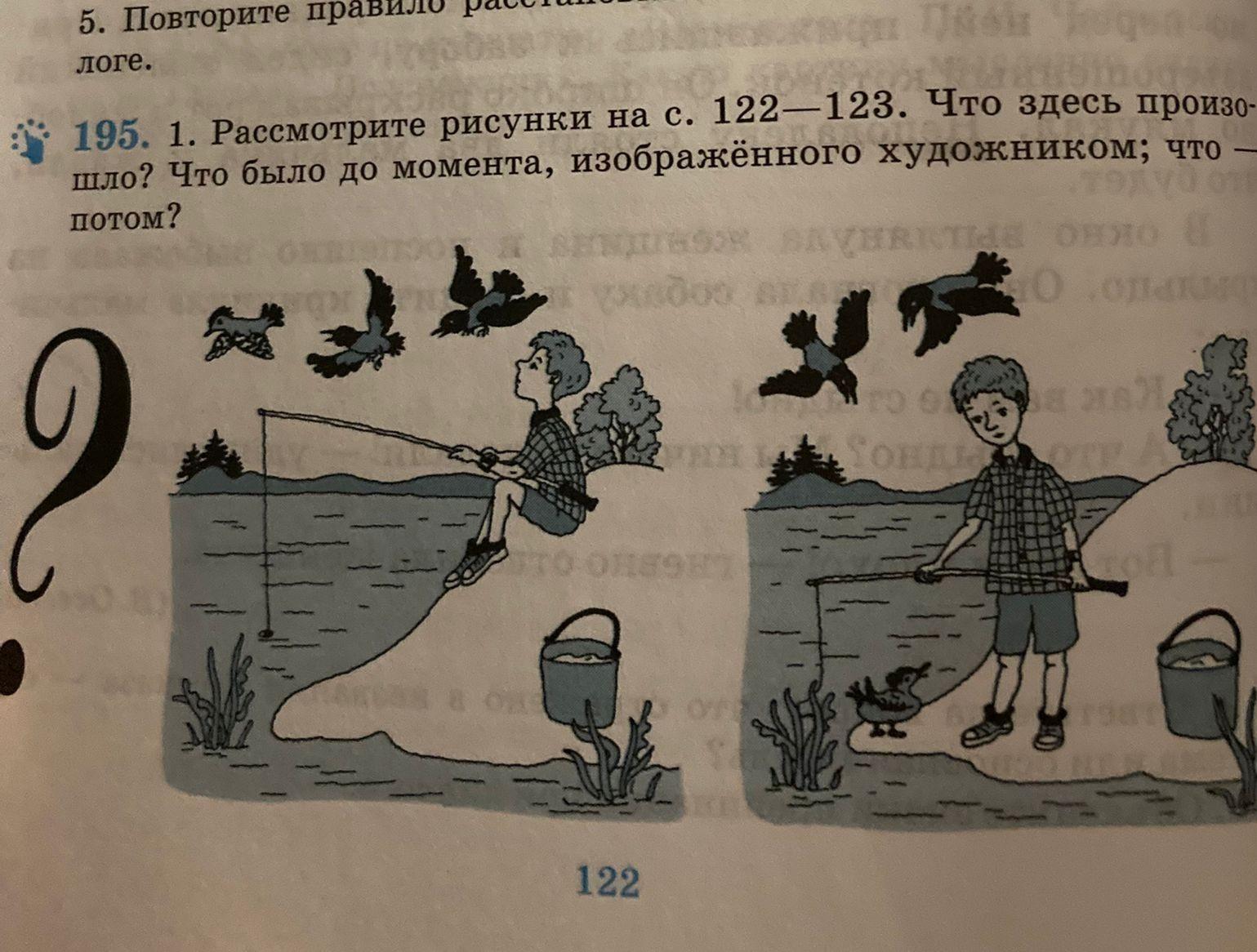 Рассмотрите рисунки на с 122 123.Что здесь произошло?Что было до момента,изображеного художником что потом?