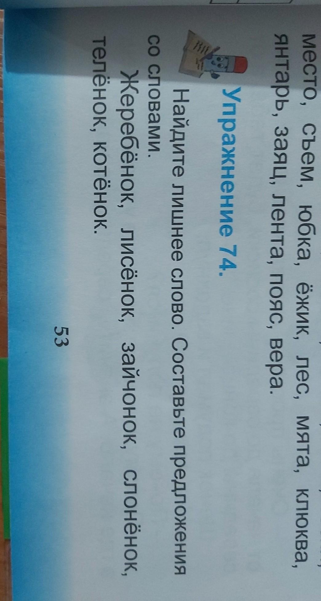 Найдите лишнее слово. Составьте предложения СО СЛОвами. Жеребёнок, лисёнок, зайчонок, слонёнок, телёнок, котёнок. даю 20 баллов