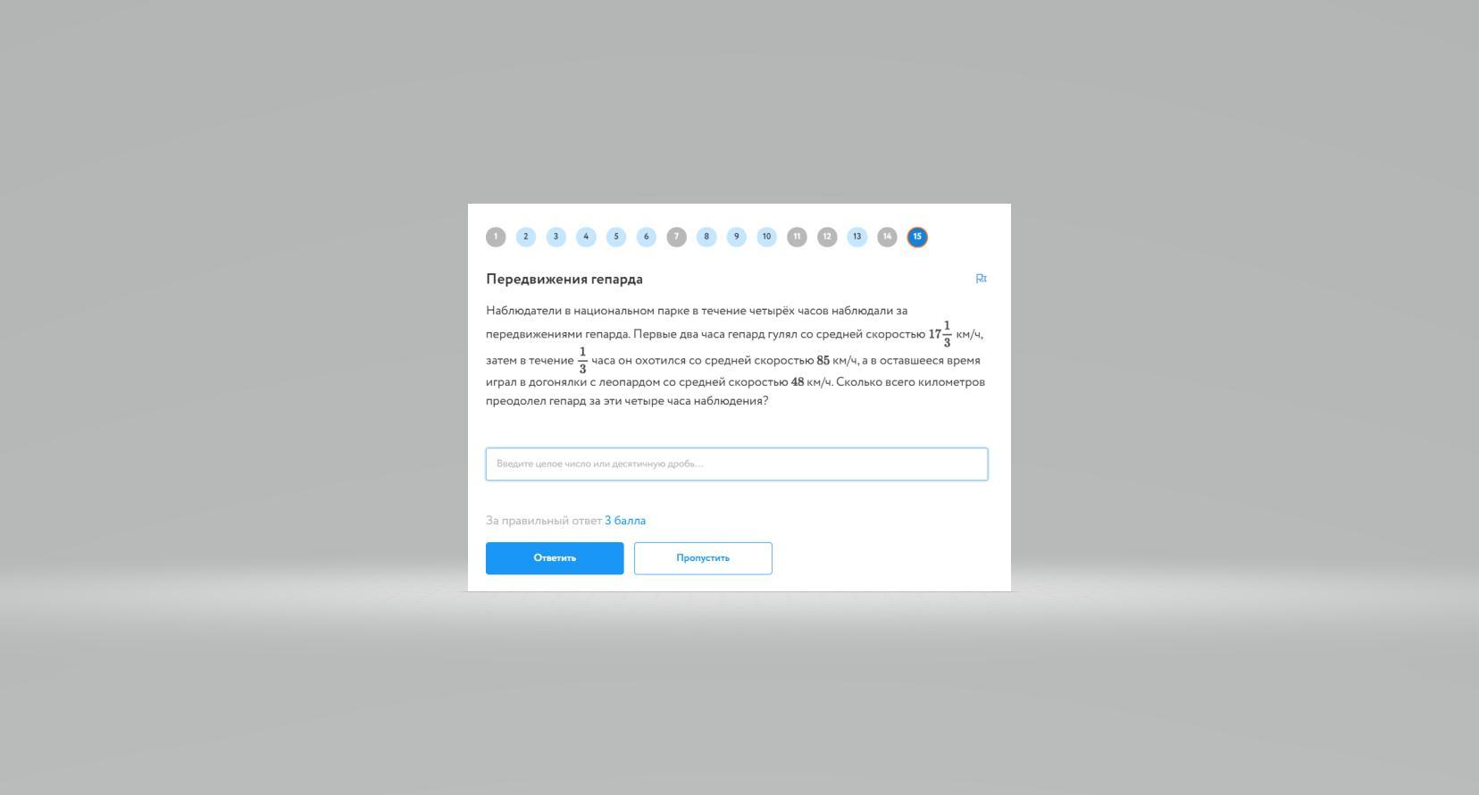 23 1/3 + 28 1/3 + 80 = 131 2/3 км преодолел гепард