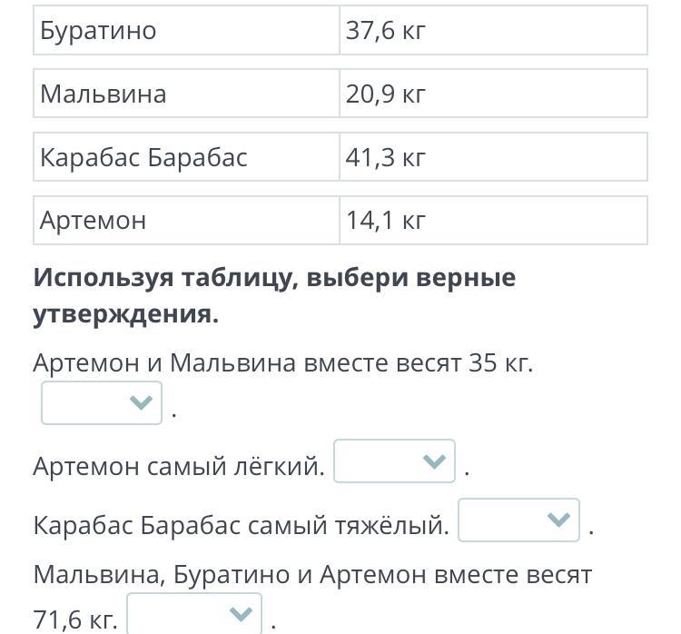 3. Карабас Барабас имеет самый большой вес, значит верно