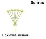 Квітки сидять на верхівці осі на квітконіжках однакової довжини — це зонтик, тому що зонтик – суцвіття, у якому квітки сидять на верхівці головної осі на квітконіжках однакової довжини (вишня, цибуля).