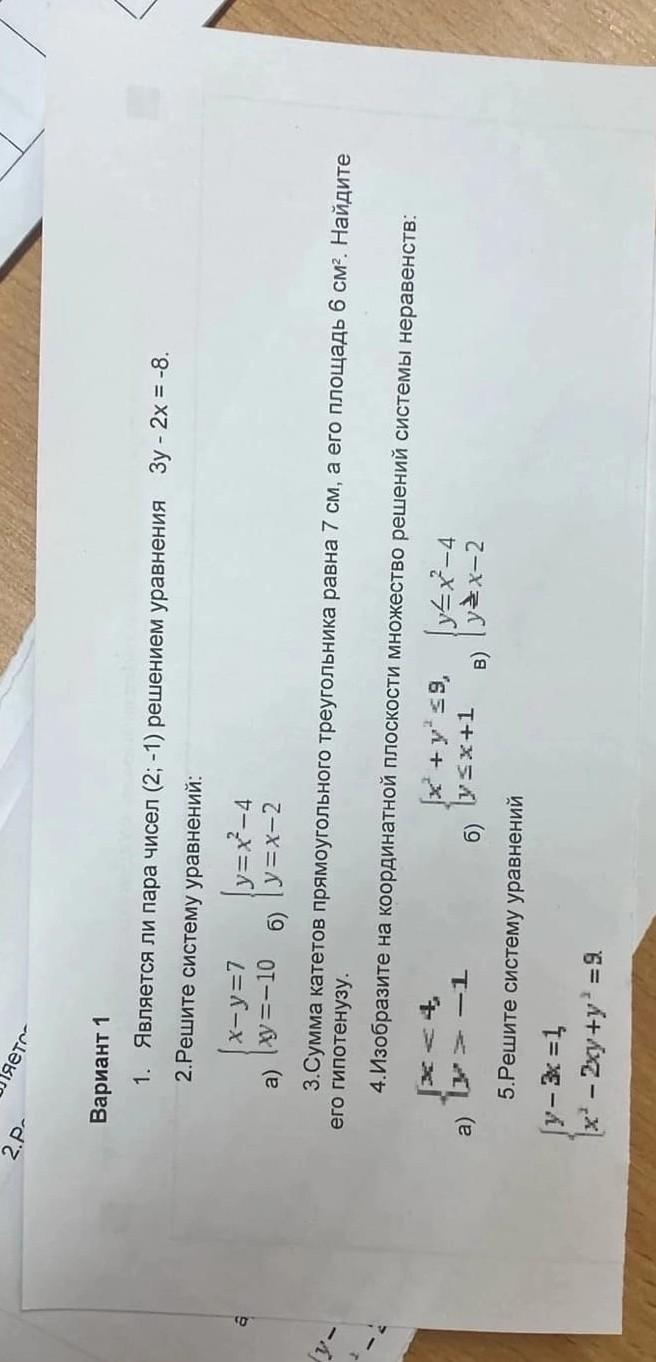 является ли пара чисел 2 - 1 решением для уравнения 3 y - 2 x равно -8