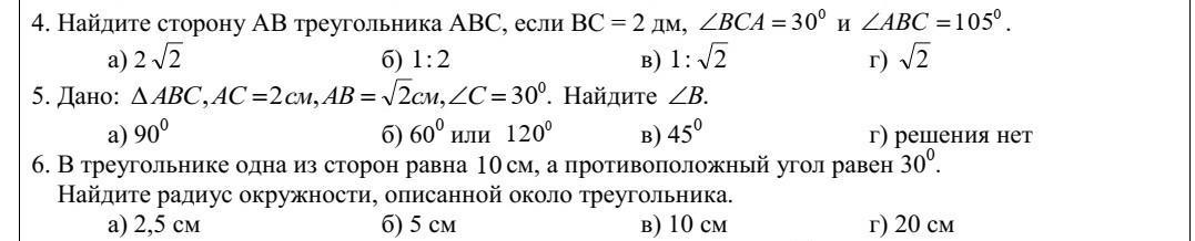 Подсказка : используй теорему синусов. (Сторона1/синус противолежащего угла = сторона2/синус противолежащего угла = 2R.