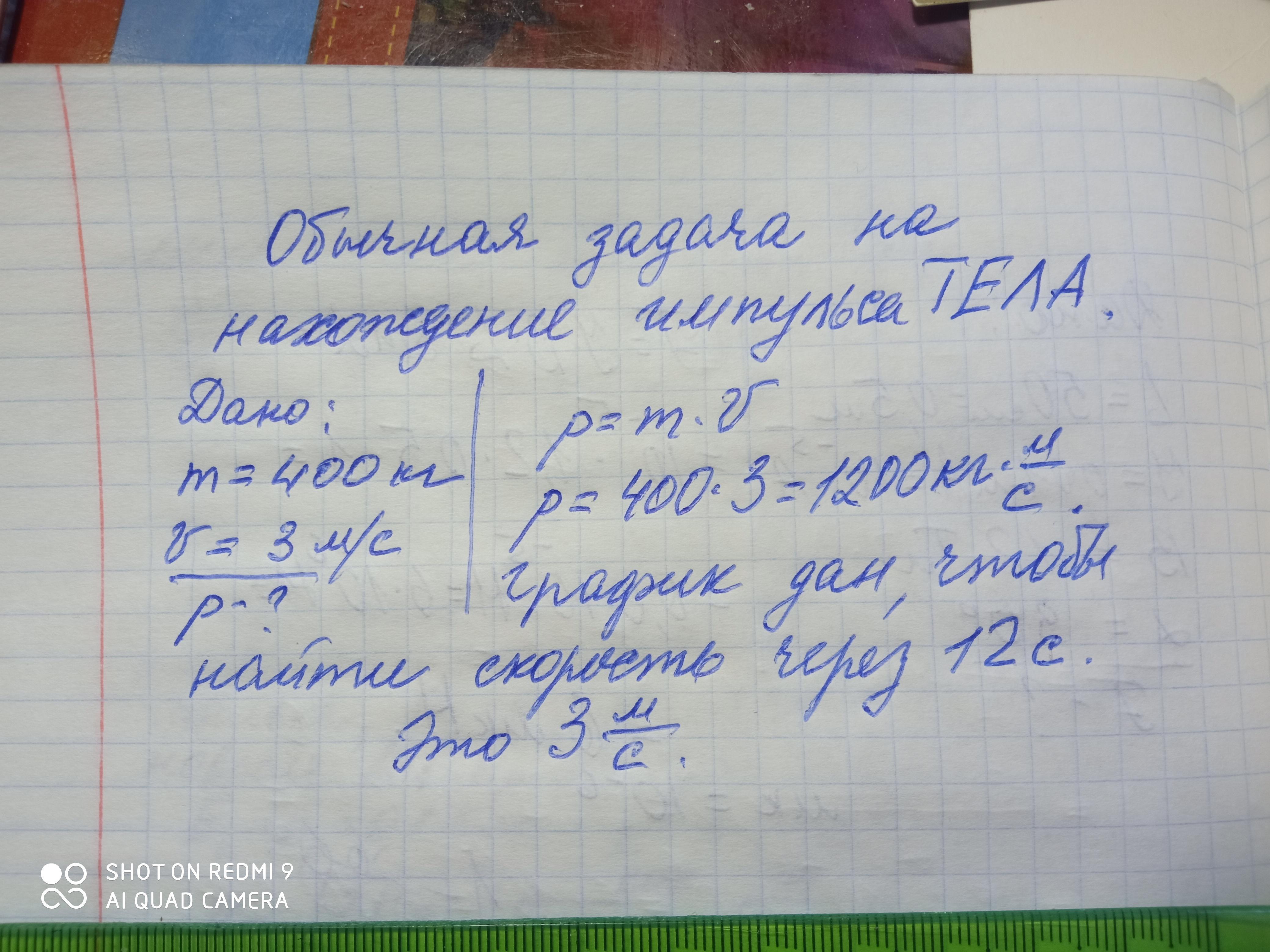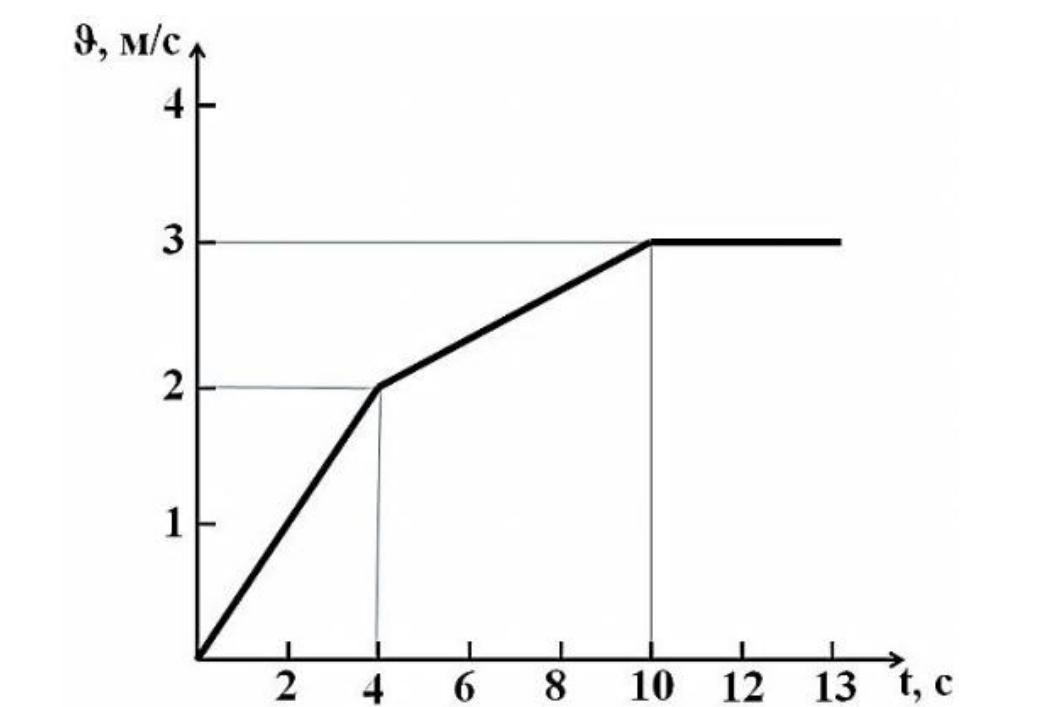 Рабочий катит тележку массой 400 кг. На рисунке представлен график зависимости скорости тележки от времени. Определите импульс тележки в конце двенадцатой секунды.