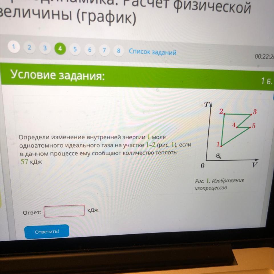 одноатомного идеального газа на участке 1-2 (рис. 1), если