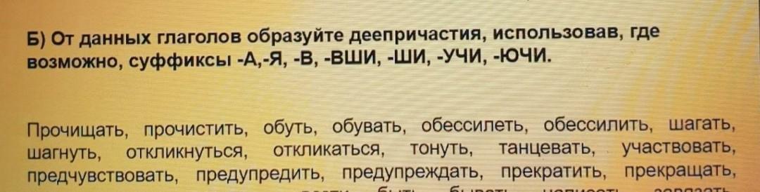 прочищая прочистила обувая обув обессилев обессиливая шагая шагнув откликнувшись откликаясь тонув танцуя участвуя предчувствуя предупредив предупреждая прекратив прекращая