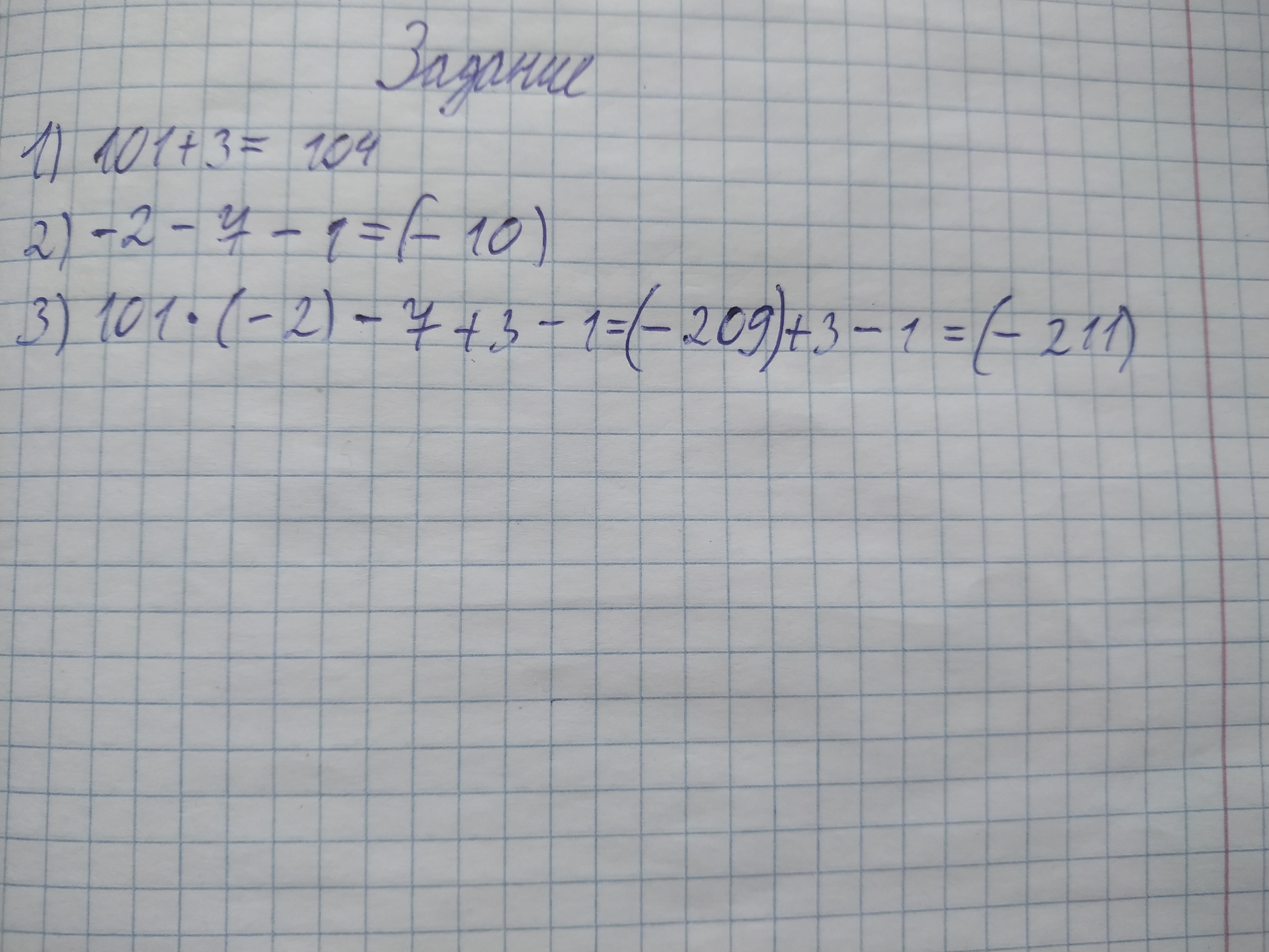 Рационально решим алгебраическое выражение, Запиши данное выражение как алгебраическую сумму (Слагаемые не меняй местами, запиши без пробелов): 101(-2)+(-7)+3+(-1) = Постепенно вычисли значение данного выражения: 1) сложив положительные числа, получим 2) сложив все отрицательные числа, получим 3) значение выражения равно Ответить. Пж помогите это я класс