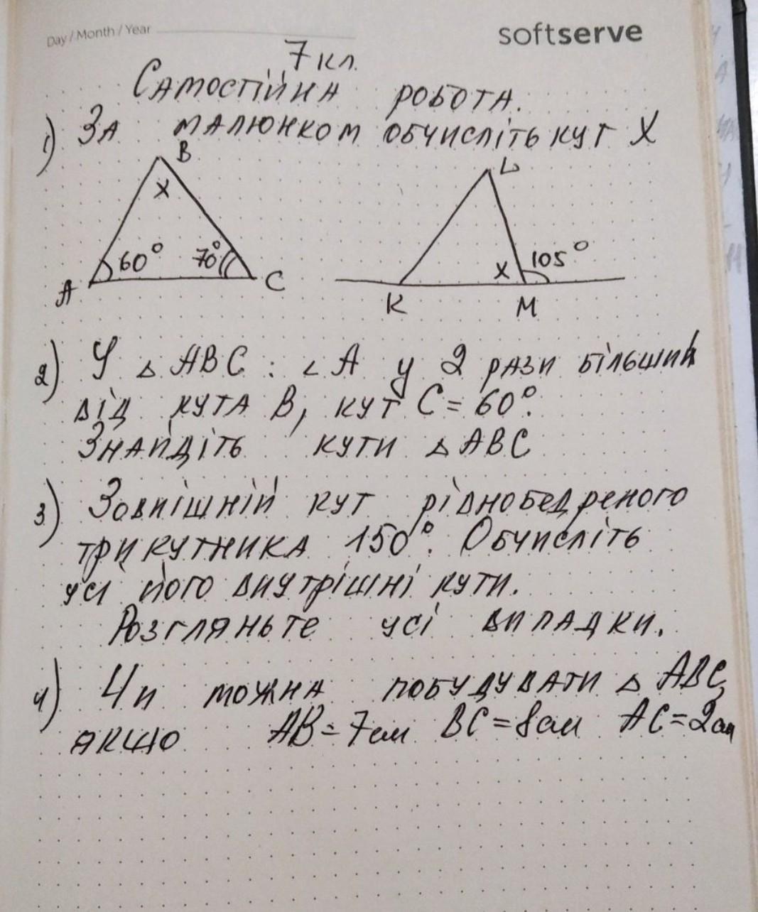 1 ) а ) х = 180° - ( 60° + 70° ) = 180° - 130° = 50° ; х = 50° ;