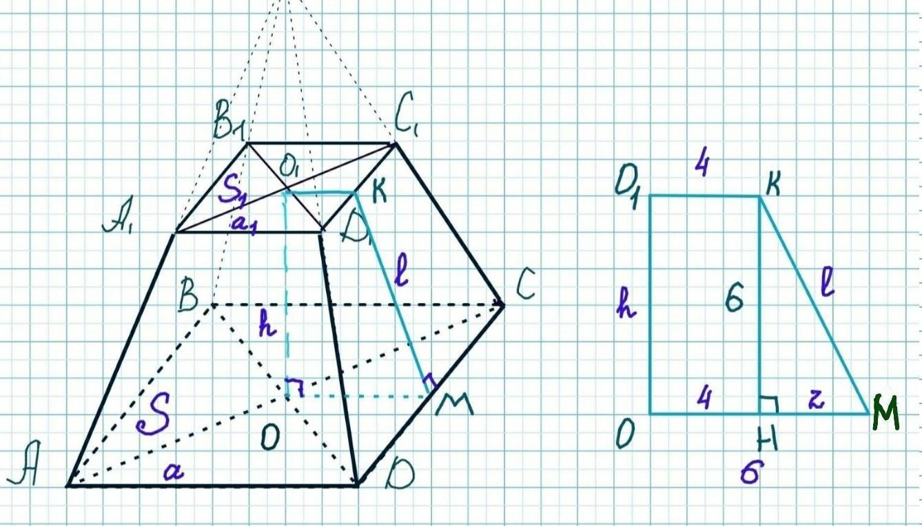 Площадь боковой поверхности усечённой пирамиды равна 80√10 см².