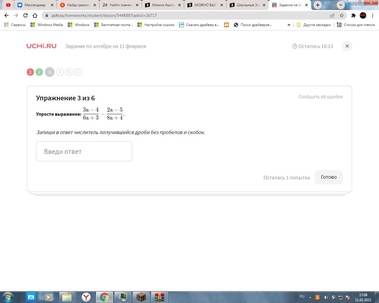 а надо так Запиши в ответ числитель получившейся дроби без пробелов и скобок.