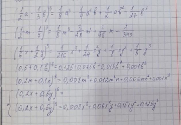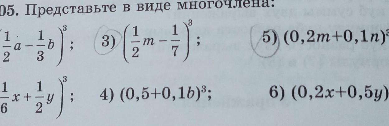 5.105. Представьте в виде многочлена: 1 1) 1 а 2 3 1 h 3 3) 1 m 2 +) 3 5) (0,2m+0,1n); 7 1 2) х+ ». 3 1 у 2 4) (0,5+0,1b); 6) (0,2х+0,5y). 6