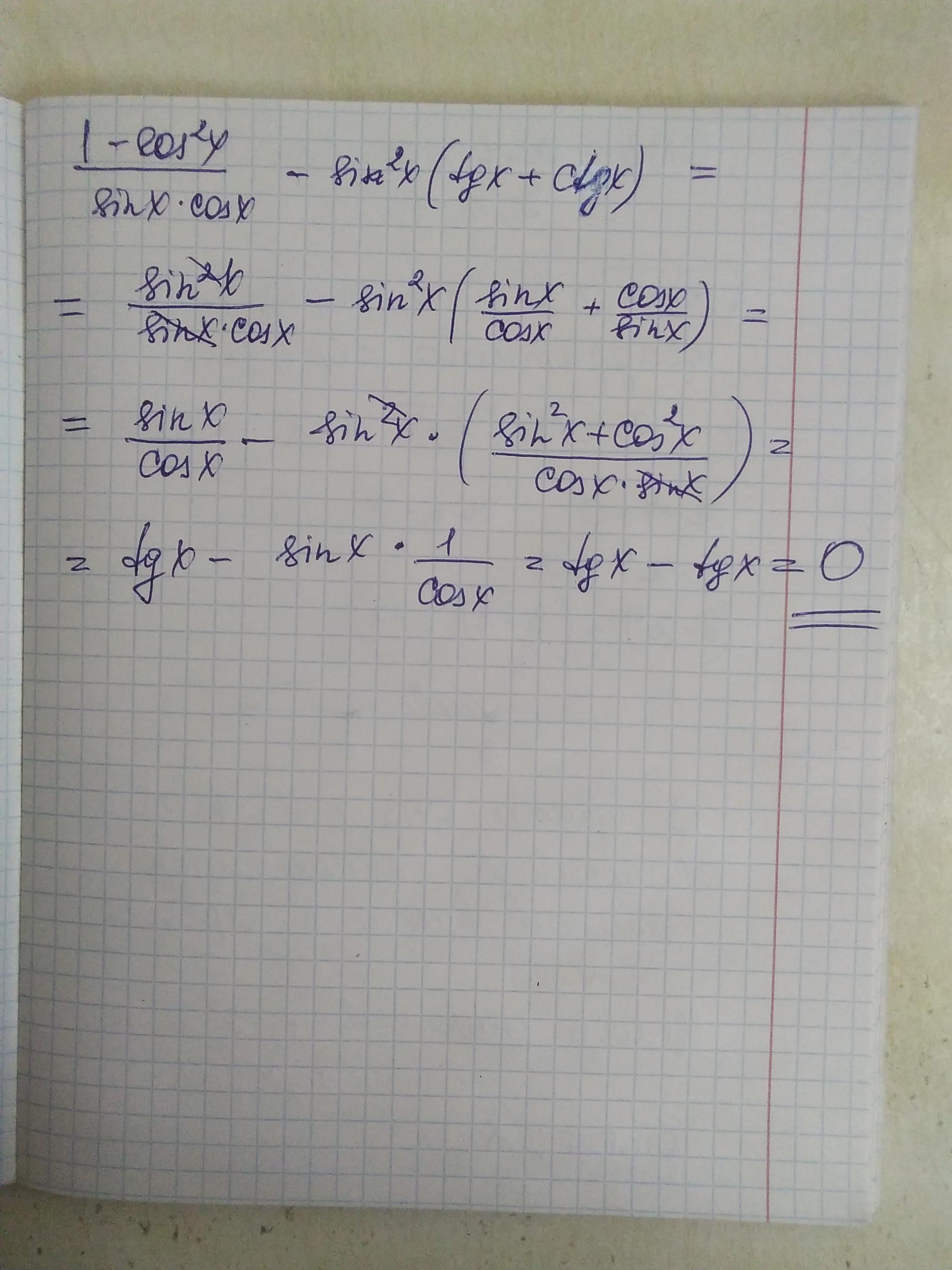 (1-сos²x)/(sinx*cosx)-sin²x*(tgx-сtgx)=sin²x/(sinx*cosx)-sin²x*(tgx-сtgx)=