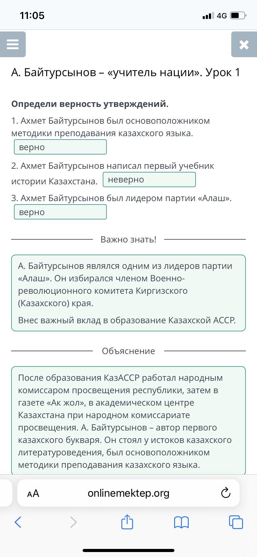 1. Ахмет Байтурсынов был основоположником методики преподавания казахского языка.